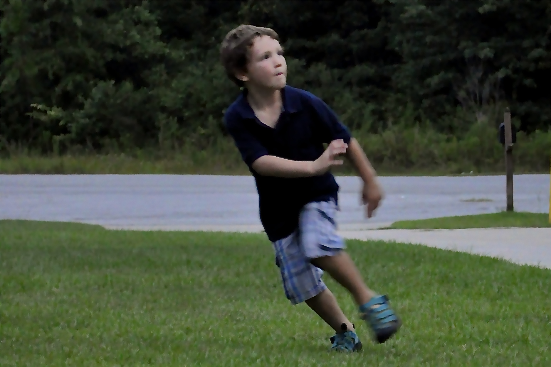 I shot this picture on Friday. He and Gil were throwing the football. It’s blurry, but you get the idea. I’m learning.