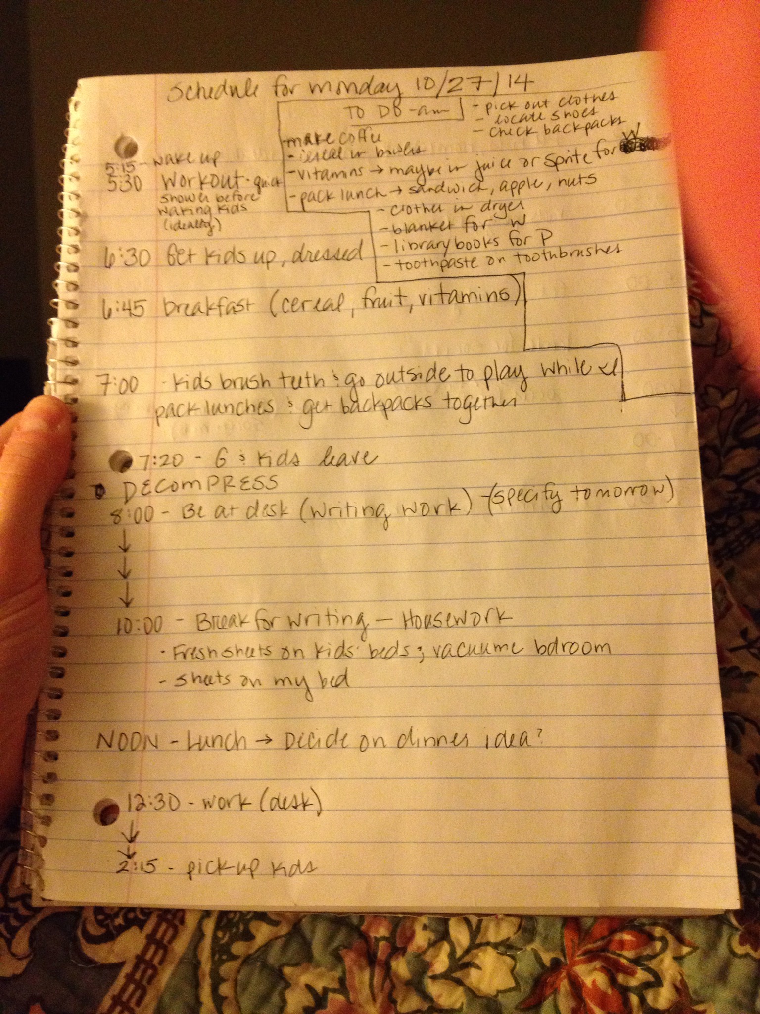 I wrote down my tentative plan and list since I learned last week that if I can’t see it, I’ll do whatever I feel like in the moment.