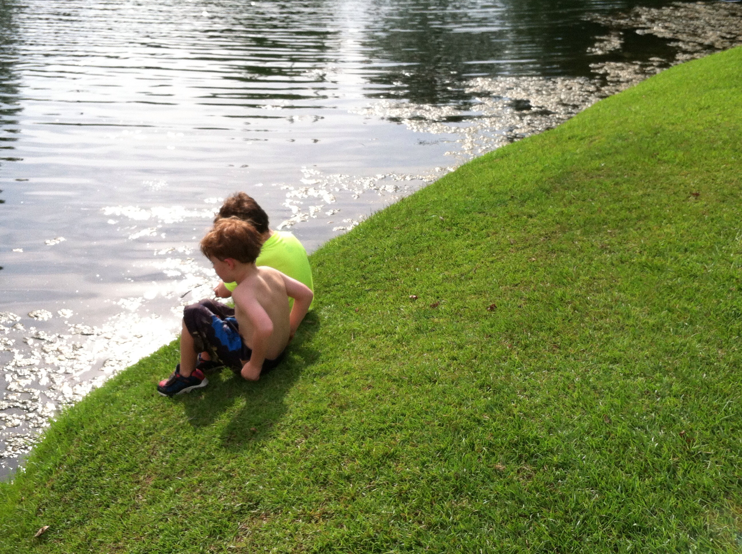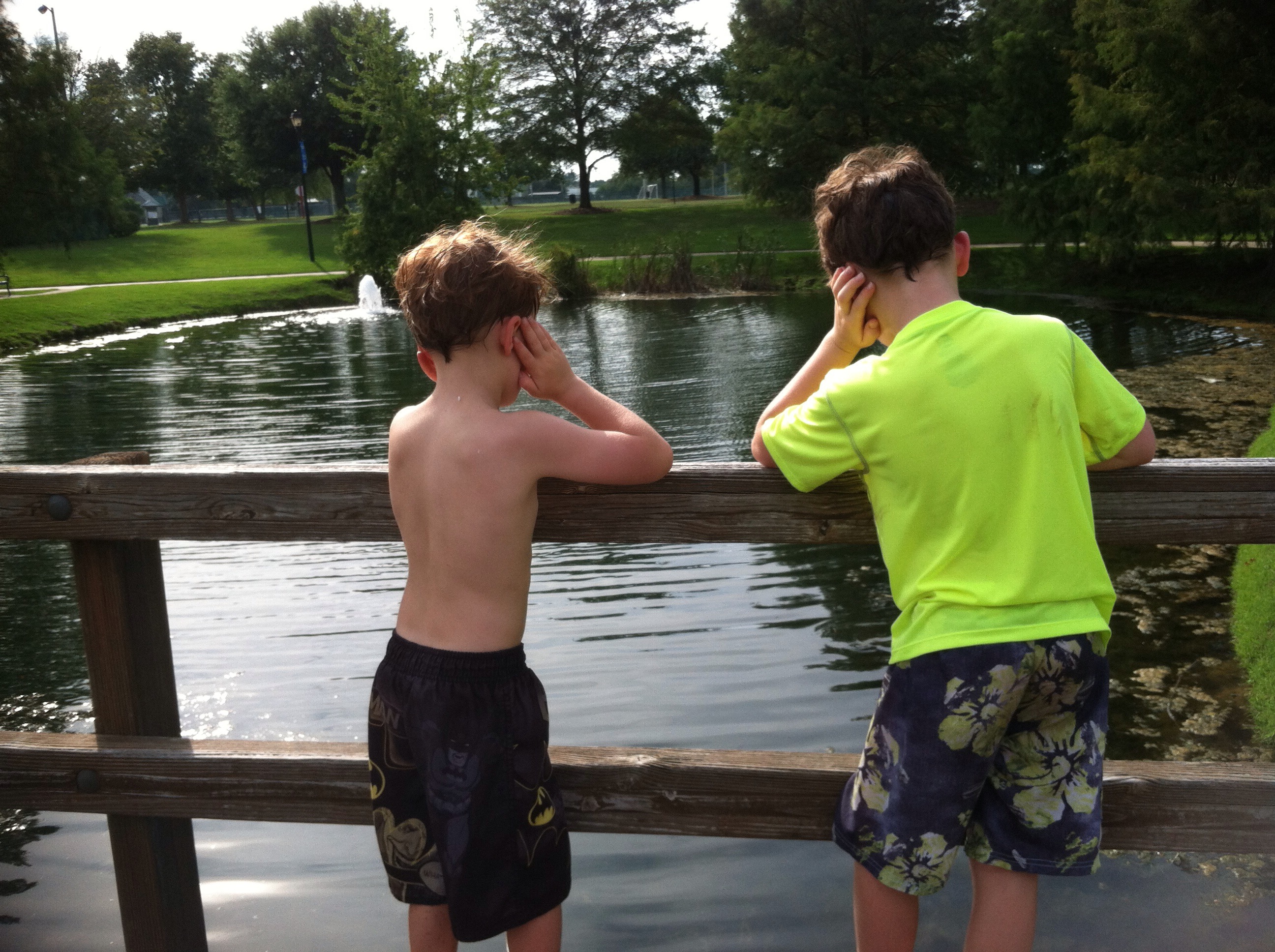 Yesterday we ventured over to the pond once again — no strollers and no screaming. Just a pleasant walk on sweltering day.